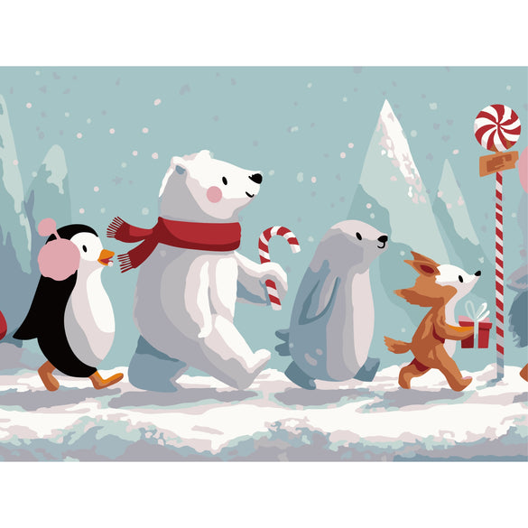 This kit is basically winter joy in a box. A penguin in earmuffs, a polar bear with a scarf, a seal waddling along, and a fox proudly carrying a gift—they all look like they’re heading to the cutest holiday party ever. If your child is into cute animals, this one is a sure winner.