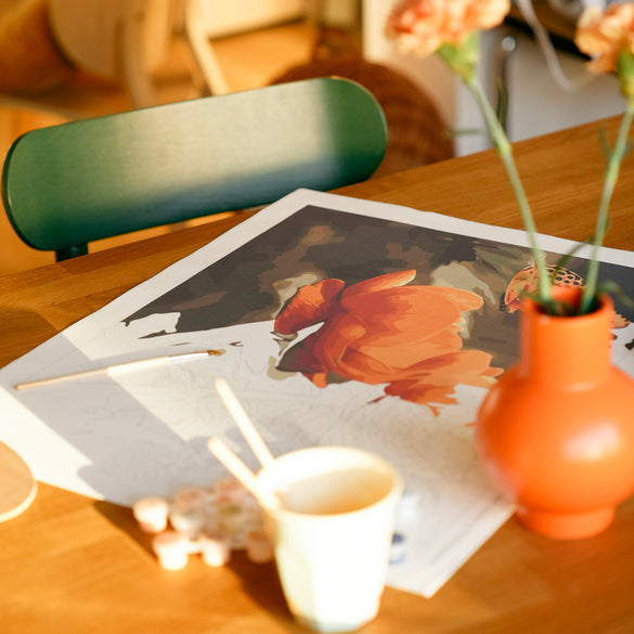 Achetez votre Kit de peinture "Papillons et fleurs orangés en été" avant qu'ils soient tous partis !