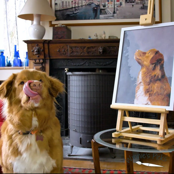 Our rescue beagle, Lucy, critically examining her portrait. I think she approves.