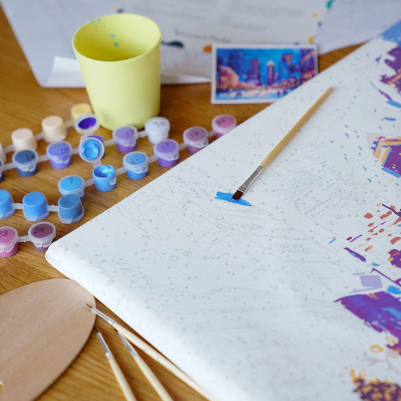 Bring the charm of winter wonderland nights to life with Downtown Winter Delight. This framed masterpiece captures the energy of a snow-dusted city glowing with golden lights and the laughter of skaters below. As you paint each detail, you’ll feel transported to a place where joy fills the air and creativity knows no bounds. Whether you’re a fan of cityscapes, winter sports, or simply the magic of the holiday season, this kit is your perfect escape to creative serenity.