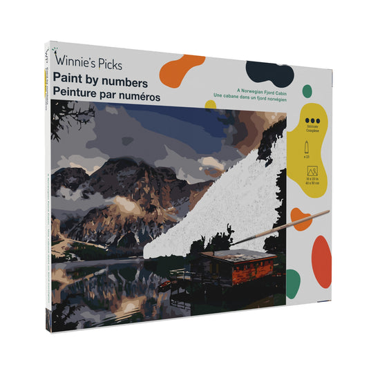 This landscape paint by numbers kit is perfect for all nature lovers who dream of a getaway far away, deep inside the heart of the northern fjords. Even if you don’t like the harsh weather, there is always a cabin to take shelter in and enjoy the grand, unique landscape from inside.