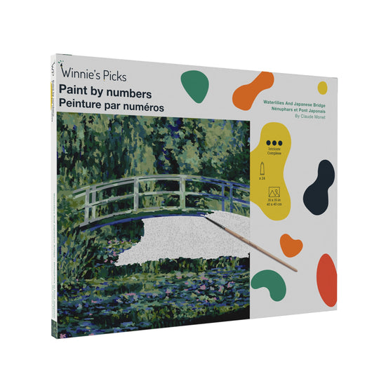 Bring the beauty of Claude Monet's Waterlilies And Japanese Bridge to your home with this paint by number kit. This kit includes a numbered canvas, high-quality acrylic paints, and a brush. Just follow the simple instructions to complete your masterpiece.